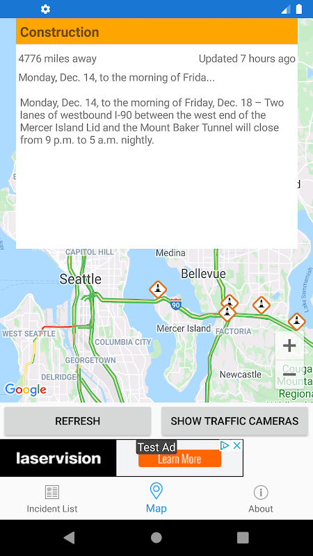 시애틀을 포함한 워싱턴 주에 대한 실시간 교통 보고서 및 카메라 :