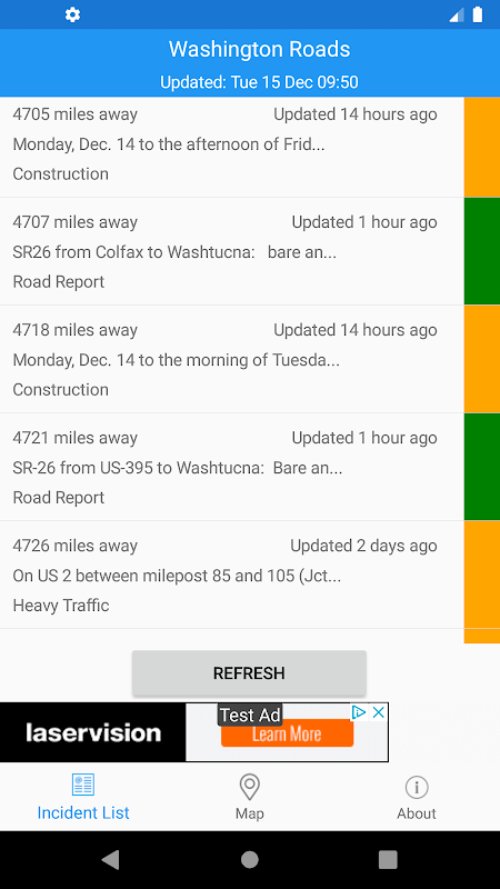 -여행에 영향을 미치는 교통 사고보고 (사고, 도로 공사, 유지 보수, 기상 조건, 눈 등)