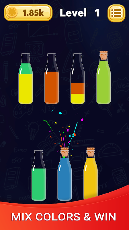 - 레벨을 완료하려면 병 하나가 단색이어야 합니다.