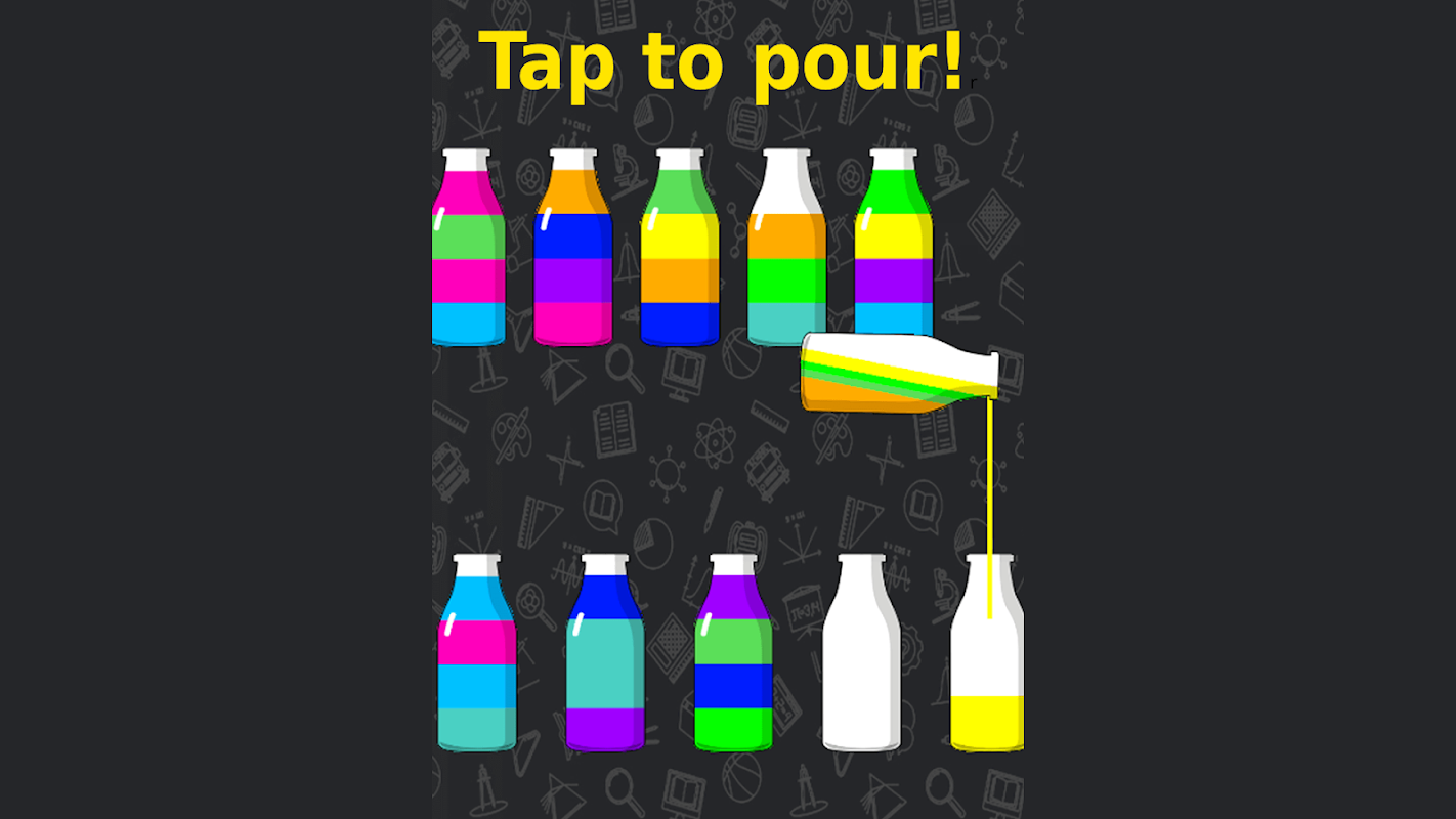 모든 색상이 같은 유리에 나올 때까지 유리에 있는 착색된 물을 분류하십시오. 두뇌를 단련할 수 있는 도전적이면서도 편안한 게임!