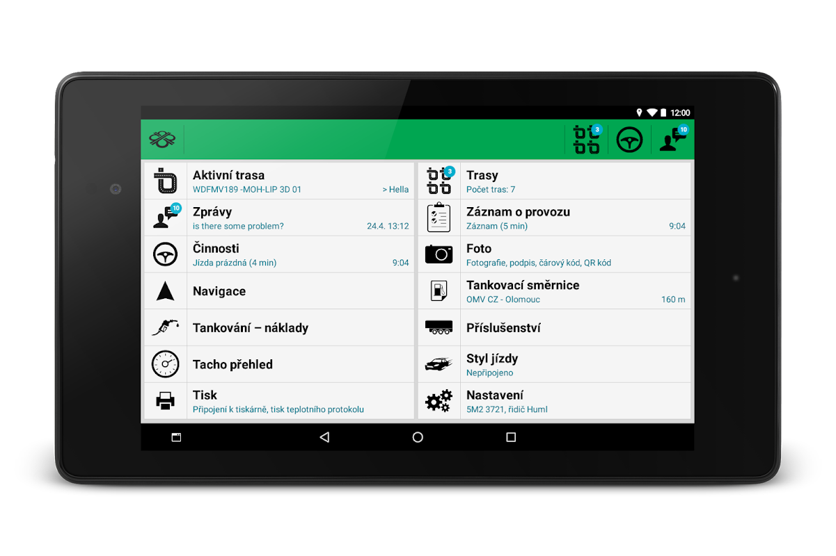 WD Fleet 3D는 포괄적 인 운송 계획 및 배송 솔루션의 일부입니다. 내장 된 Sygic Truck 3D 내비게이션을 통해 운전자가 온라인 경로를 통해 전송을 예약하고, 메시지, 파일을 전송하고, WEB DISPATCH에서 전송을 평가할 수있는 운영자와 연결할 수있는 통신 터미널 역할을합니다.