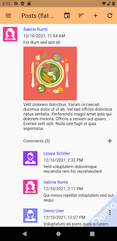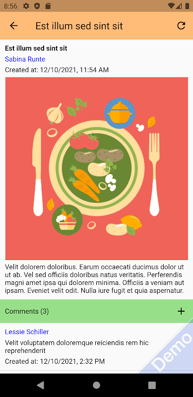 데모 앱 : 모바일 응용 프로그램은 사용자가 게시 된 메시지의 형태로 대화를 잡고 있습니다.