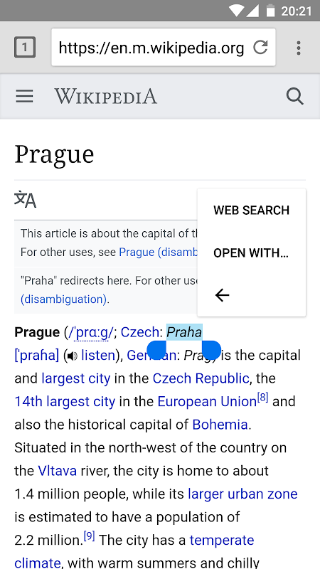 이 앱은 다른 앱이 사용하는 "웹 검색" 컨텍스트 메뉴(ACTION_WEB_SEARCH)를 통해 수행된 검색을 처리합니다. 이렇게 하면 현재 기본값으로 설정된 웹 브라우저에서 선택한 검색 엔진(이 앱에서 설정)에서 검색 쿼리를 열 수 있습니다.
