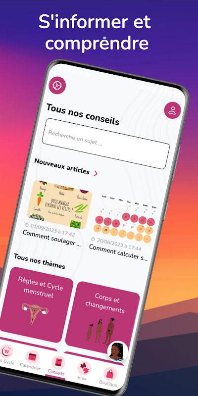 매일 신청서를 열 때마다 자신이 처한 주기 단계에 맞는 조언을 발견하게 됩니다. 실용적인 팁, 건강 정보 및 개인 개발.