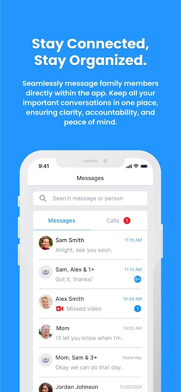 실시간 메시지: 초대된 가족 구성원과 비공개 또는 그룹 메시지를 통해 소통합니다. 빠른 검색을 위해 모든 커뮤니케이션을 쉽게 검색할 수 있는 하나의 아카이브에 저장하세요.