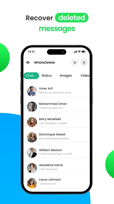 삭제된 메시지 보기 친구로부터 삭제된 메시지를 복구합니다. 이 앱에서 삭제된 메시지를 쉽게 찾을 수 있습니다.