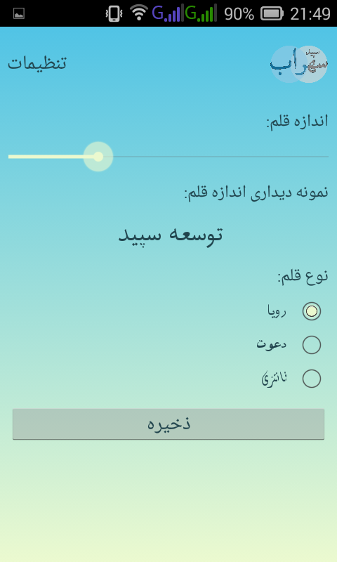 تغییر اندازه خط : قابلیت انتخاب اندازه های بسیار بسیار بزرگ و بسیار بسیار کوچک جهت نمایش اشعار را برای شما فراهم می کند. این ویژگی به افرادی که دارای ضعف بینایی دارند کمک می کند به راحتی بتواند با برنامه کار کنند .
