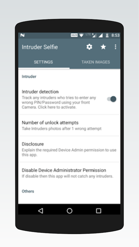 find out who tries to unlock your device, get notification alert, save and share the taken photo. In addition, hide captured photo from gallery so no other person can see it.