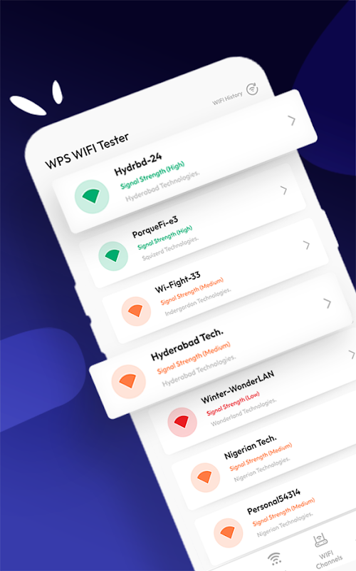 Wi-Fi 마스터가 포함된 Wi-Fi 분석기 및 Wi-Fi 비밀번호 생성기는 가장 유용한 Wi-Fi 연결을 얻고 연결 속도와 안정성을 높이는 데 도움이 됩니다. WiFi 분석기 - WiFi 지도 및 암호는 또한 WiFi 네트워크에 가장 적합한 채널과 장소를 추천합니다.