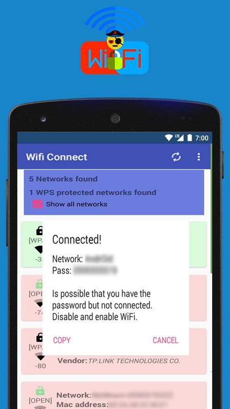 For pin connection you need to be ROOT user in less than Android 5.0 (Lollipop) versions. The advantage of being ROOT is that you can show network password if the pin connection is successful we will, otherwise you will connect to the network but cannot show it. Each feature will be enabled or disabled depending on the situation of each terminal.