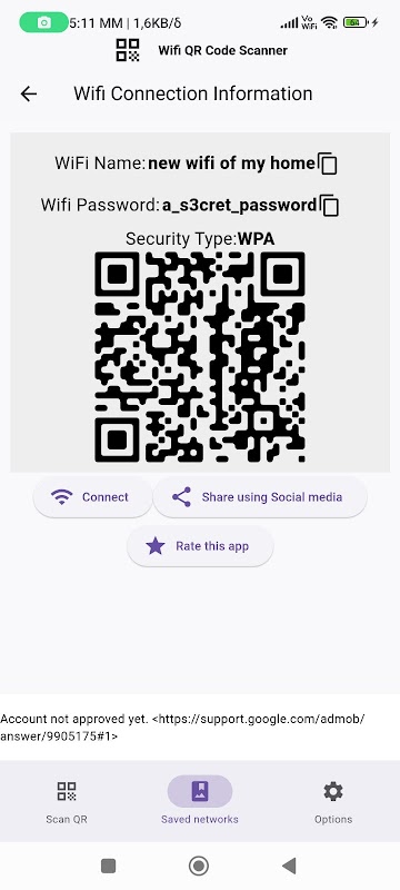 "WiFi QR 코드 비밀번호 스캐너" 앱은 Wi-Fi 네트워크 공유 및 연결 과정을 단순화하도록 설계된 편리하고 사용자 친화적인 도구입니다. 이 앱을 사용하면 사용자는 SSID 및 비밀번호를 포함한 Wi-Fi 네트워크 정보가 포함된 QR 코드를 생성할 수 있습니다. 호환되는 장치를 사용하여 이러한 QR 코드를 스캔하면 앱을 통해 Wi-Fi 자격 증명을 원활하고 안전하게 공유할 수 있습니다. 이 앱은 Wi-Fi 비밀번호를 수동으로 입력하는 번거로운 작업을 간소화하여 사용자가 빠르고 효율적인 방식으로 네트워크에 쉽게 연결할 수 있도록 해줍니다. 이 WiFi QR 코드 비밀번호 공개 앱을 사용하여 번거로움 없는 Wi-Fi 설정 및 공유의 이점을 누려보세요.
