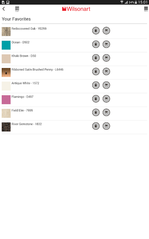 Wilsonart® 디자인 응용 프로그램은 추가 샘플 등을 주문 할 수 있습니다.