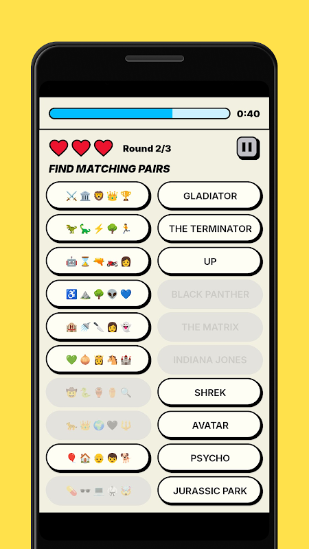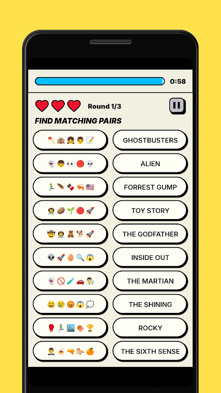 🎮 간단하고 중독성 있는 게임플레이: 게임 방식은 배우기 쉽지만, 손에서 놓기 어렵습니다. 이모티콘을 보고 영화를 맞춰 보세요!