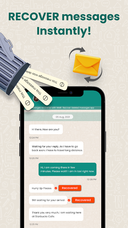 비즈니스 세계에서는 모든 메시지가 중요합니다. WhatsApp Business용으로 특별히 설계된 모바일용 메시지 복구 앱을 사용하면 삭제된 메시지가 영원히 사라지지 않는다는 사실을 알고 안심할 수 있습니다. 전문적인 대화를 보호하고 삭제된 메시지를 손쉽게 복원하세요. 고객 커뮤니케이션을 처리하든, 팀과 협력하든, WAMR 메시지 복구를 사용하면 WhatsApp Business 채팅 기록이 안전하고 완전하게 유지됩니다.