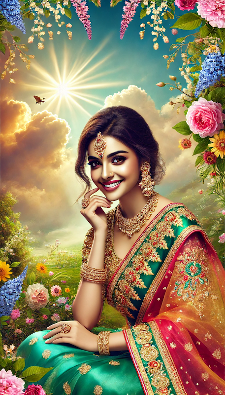 다양한 스타일의 세련된 사리로 사진을 미리 보고 편집해 보세요.