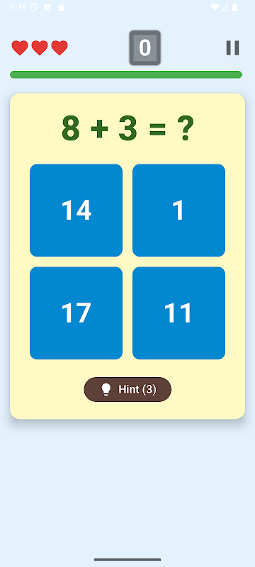 간단하고 직관적인 덧셈 퍼즐 게임입니다. 1분 안에 덧셈 문제를 풀고, 정답 시 +1점, 오답이나 시간 초과 시 하트 -1! 하트 3개가 모두 사라지면 게임 오버. 큰 글자와 고대비 색상, 가벼운 용량과 오프라인 지원으로 남녀노소 언제든 즐길 수 있어요.
