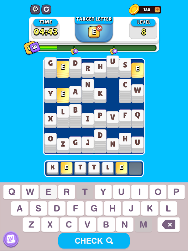 화면에 표시된 문자를 사용하여 단어를 형성하고 목표 점수를 달성하여 레벨을 통과하세요. 당신이 만드는 각 단어는 당신을 한 단계 더 발전시킵니다. 시간과 경쟁하고, 전략을 세우고, 단어 사냥의 달인이 되어보세요. 새로운 레벨로 진행하면서 더 많은 글자를 접하고 더 큰 도전에 직면하게 될 것입니다."