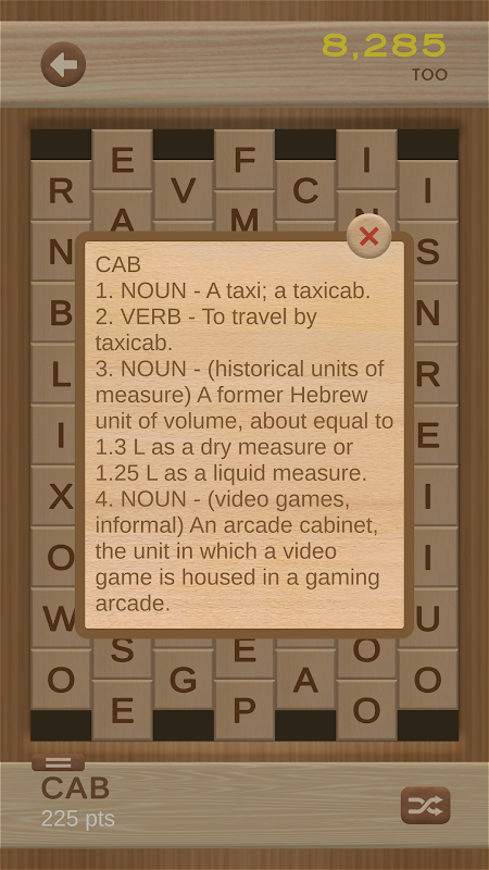 ✓ 셔플 아이콘을 터치하면 모든 글자가 셔플되지만 비용이 듭니다!