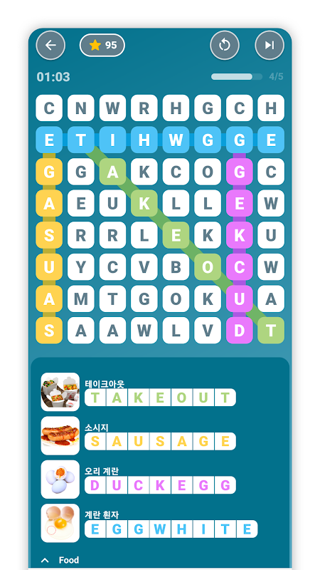 📚 어휘 확장: 각 레벨을 진행하면서 어휘가 늘어나 더욱 이국적인 단어 퍼즐에 대비할 수 있습니다.