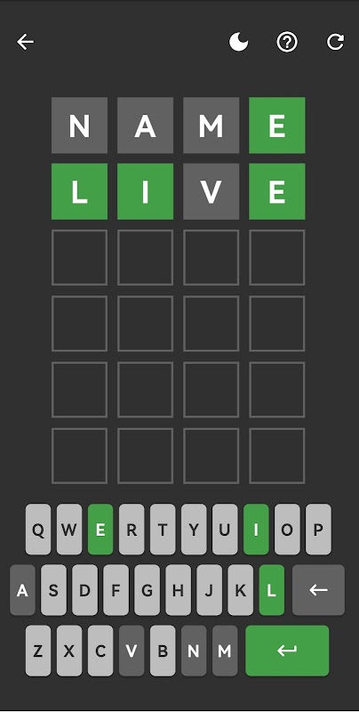 추측할 때마다 십자말 풀이의 색상이 점차 바뀌어 정답에 얼마나 근접했는지 나타냅니다.