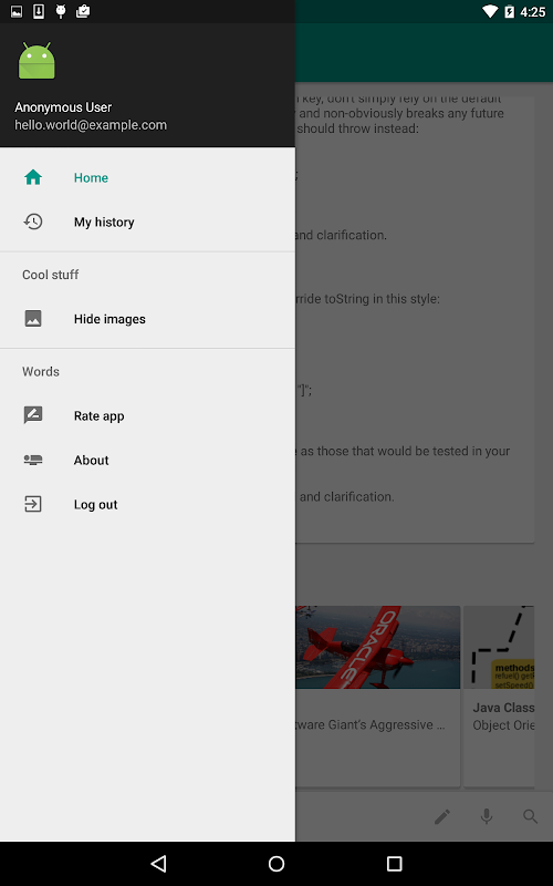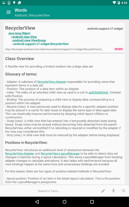 버전 1.0은 100 개 이상의 안드로이드 개념 및 구성 요소, 그것은 단지 주요 소스로 보내드립니다 우리가 용어의 데이터가없는 경우 모든 더블 체크 그들의 교장 및 지원 문서가 포함되어 있습니다.