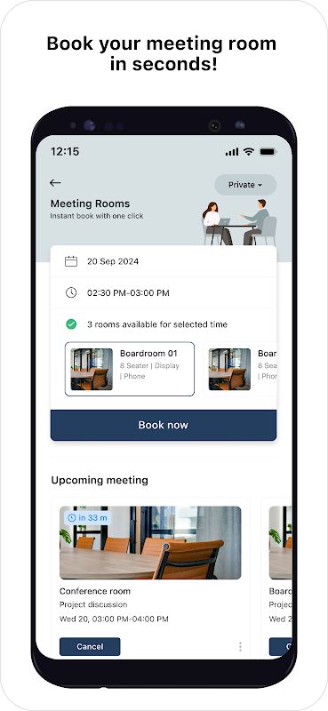 즉시 예약 – 몇 초 만에 회의실 및 회의실 예약