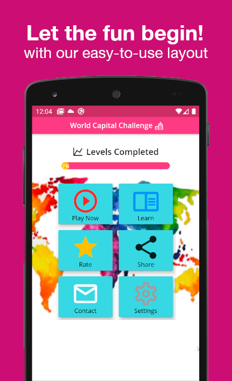 How well do you know the capital city of each of the many countries in the world? This game presents a world capitals quiz where you may test your knowledge of capital cities from a list of countries. Cities in Asian countries, US cities, flags from the Americas, you name it -- this free app features almost 200 countries in all! With an easy-to-use multiple-choice format, this capitals quiz is a fun way to learn about the different nations of the world and their capital cities. Download now and boost your knowledge of world geography!