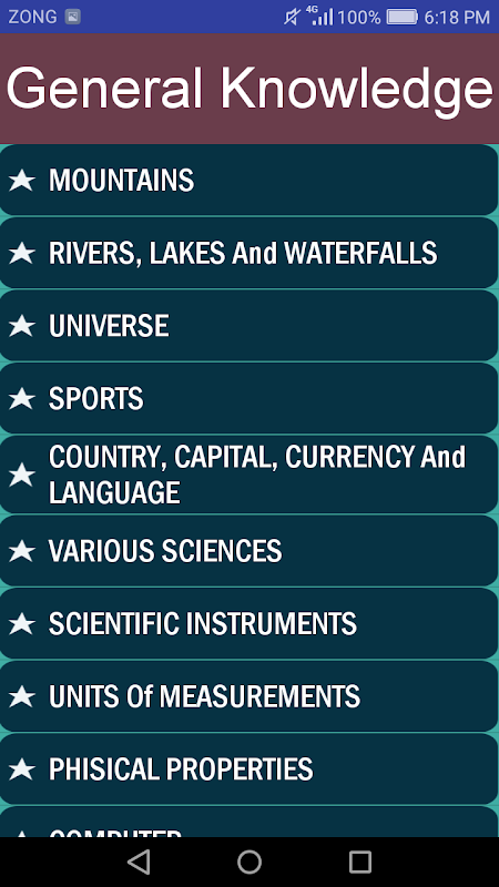 이 응용 프로그램은 우리의 세계에 관련된 여러 가지 주제로 구성되어 있으며 각각의 주제에 대한 지식을 테스트하기 위해 세부 표현된다.