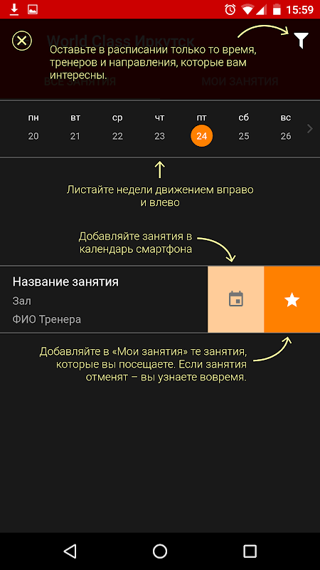 - получать оповещения о предстоящих тренировках и обо всех изменениях;