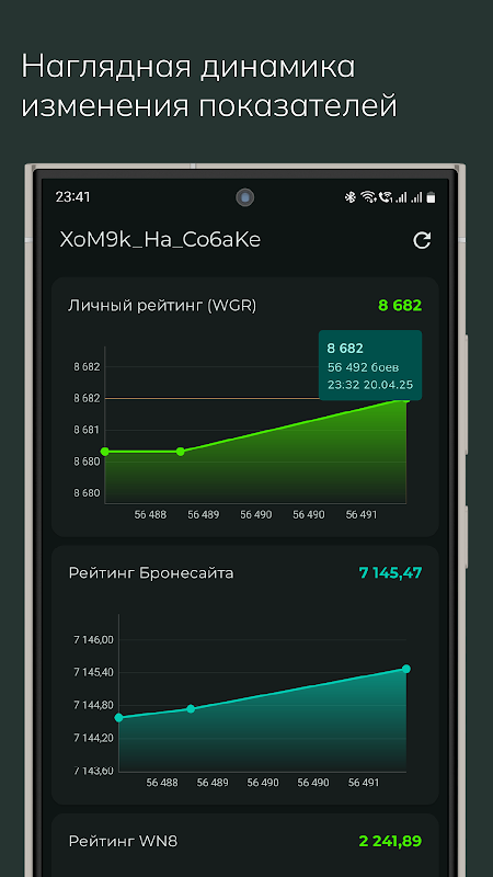 - 진행 상황은 물론 친구, 클랜원, RU 지역 유명 플레이어의 통계도 추적하세요. 성능을 비교하고 최고로부터 배우십시오.