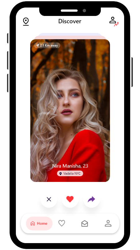 틴더 같은 디자인: 우아하고 친숙한 틴더 같은 디자인이 오래도록 기억에 남을 것입니다. 앱 방문자는 데이트 앱에서 기대했던 것을 정확하게 얻고 있는 것처럼 느낄 것입니다. 디자인은 사용자 친화적이고 매력적입니다.