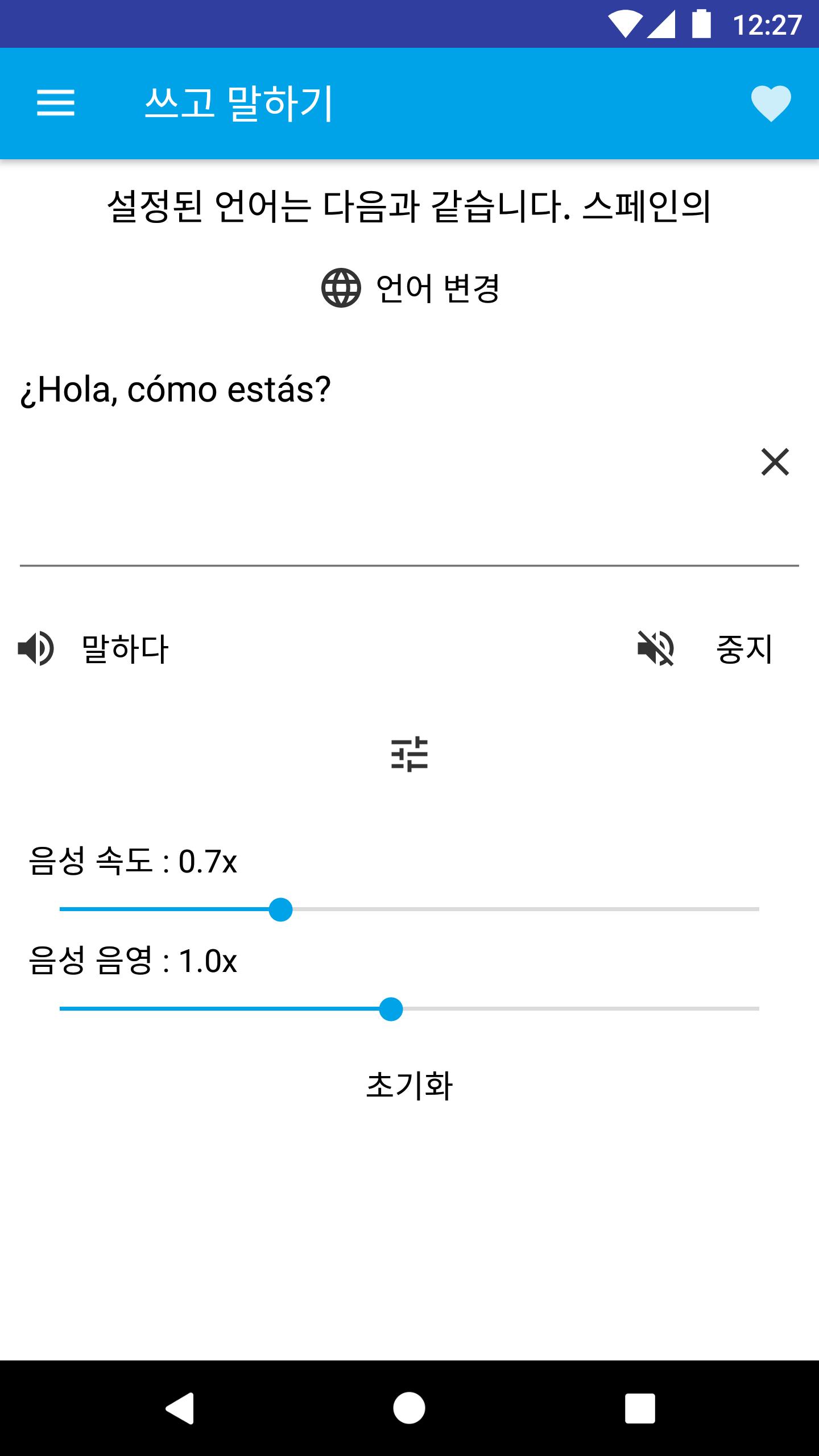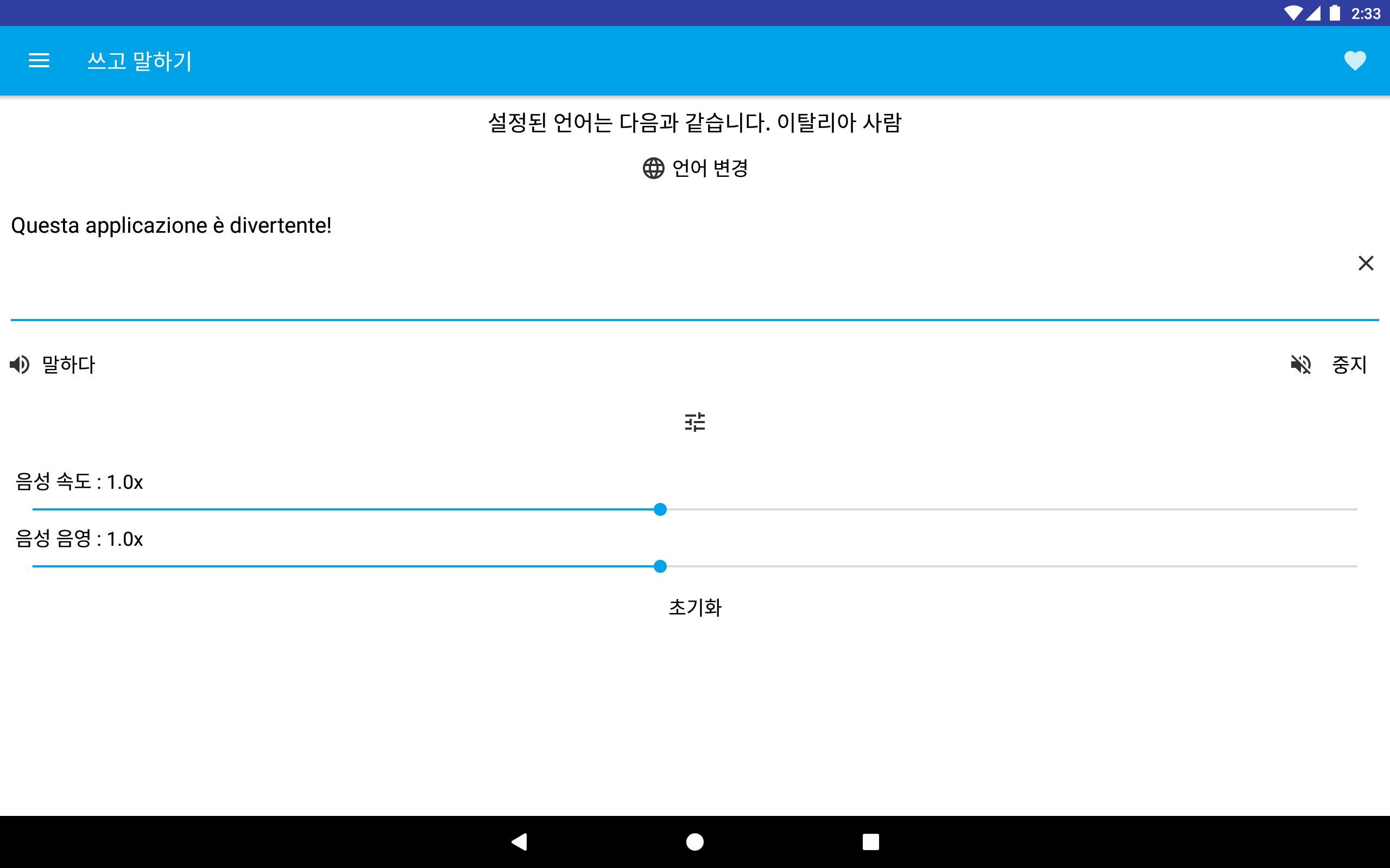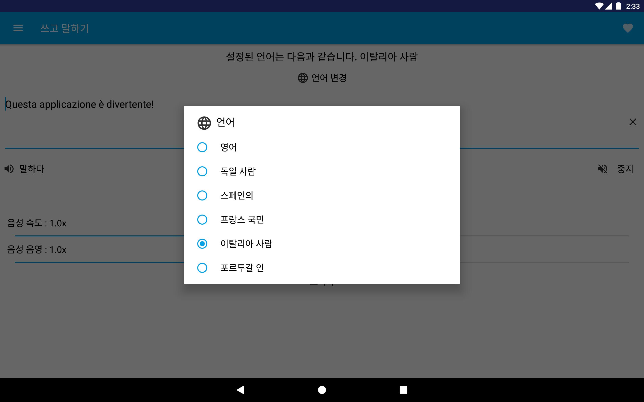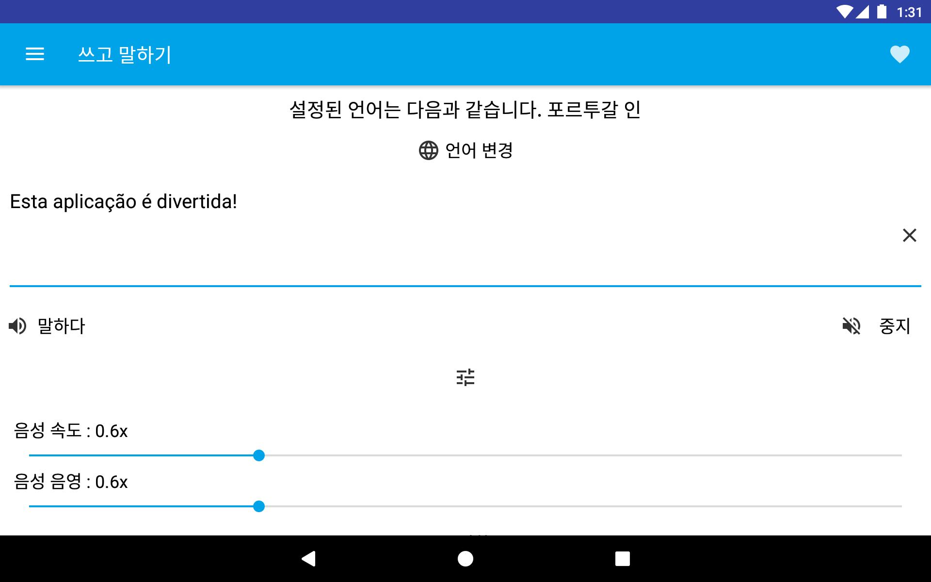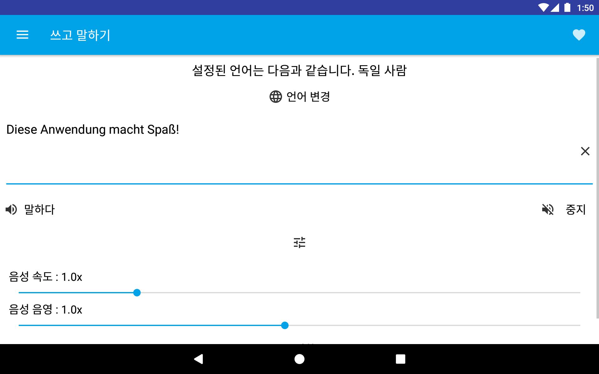 텍스트를 입력 할 수 있으며 말하기 키를 눌러 선택한 언어에 따라 읽습니다. 단어 나 문구의 발음을 아는 재미 있고 유용합니다.