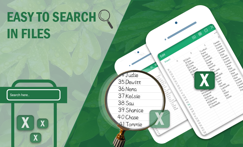 원하는 스프레드시트 문서를 즉시 공유하고 삭제할 수 있습니다. 안드로이드 장치에 원치 않거나 쓸모없는 xls 파일이 있는 경우 이 XLS 파일 판독기 - xls 파일 오프너를 사용하여 쉽게 삭제할 수 있습니다. 이 스프레드시트 응용 프로그램: XLS 파일 뷰어 앱에는 xlxs 파일을 휴대폰으로 즉시 검색할 수 있는 검색 막대가 포함되어 있습니다. 휴대폰에 많은 XLS 파일이 있는 경우 검색 막대를 사용하여 쉽게 찾을 수 있습니다. 이 xlsx 뷰어: xls 파일 뷰어는 휴대전화에서 찾을 필요 없이 앱에서 모든 xls 파일을 로드할 수 있으며 한 곳에서 쉽게 xls 파일을 볼 수 있습니다.
