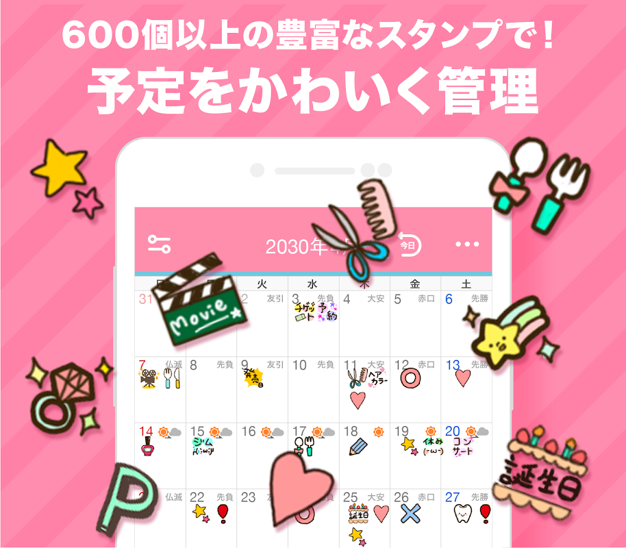 예정에 맞는 스탬프도 풍부하므로 간단하게 관리할 수 있습니다♪