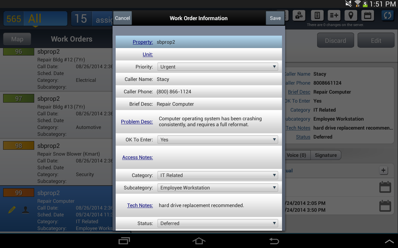 유지 보수 관리자는 쉽게, 기술자를 추적하는 작업 지시를 할당과 태블릿에서 자신의 유지 보수 작업을 관리 할 수 있습니다. 테크 위치는 유지 보수 기술자 Yardi Mobile을 활용하고지도를 표시 할 수있다. 의는 드래그 앤 드롭 과정을 통해 예약 할 수 있습니다 WO.