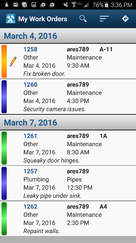 ● 할당 된 작업 지시는 즉시 유지 보수 기술자의 장치에 표시