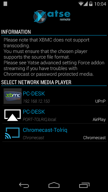 When installed it allows streaming of your XBMC media to your phone or compatible UPnP / AirPlay / Chromecast device from Yatse. (Needs Unlocker).