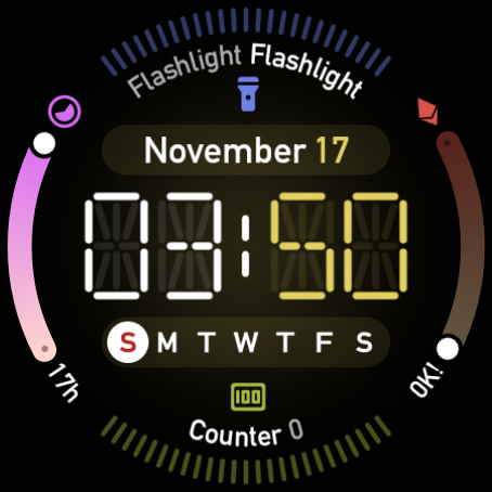 시계 화면 기능: - 시간/날짜/요일 - 5가지 시간 글꼴 - 5가지 색상 세트 30가지 이상의 색상 구성표 - 4가지 합병증 슬롯