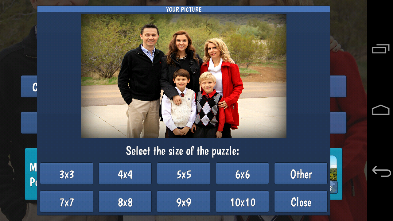 Select the images from your photo gallery and play the tile puzzle with your own pictures!