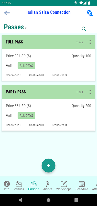 아티스트와 워크샵을 포함한 댄스 페스티벌을 조직하여 제공합니다. 워크샵, 파티 및 기타 활동으로 일정을 정의하십시오. 그룹 또는 단일 참석자를 관리하고 축제 추종자를 추적하십시오.