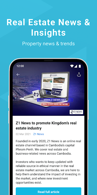 Z1 Real Estate 모바일 앱 – 부동산 구매, 판매, 임대 등의 요구 사항에 맞는 기업 및 개인용 부동산 플랫폼을위한 캄보디아 최초의 완성 된 선도적 인 솔루션입니다.