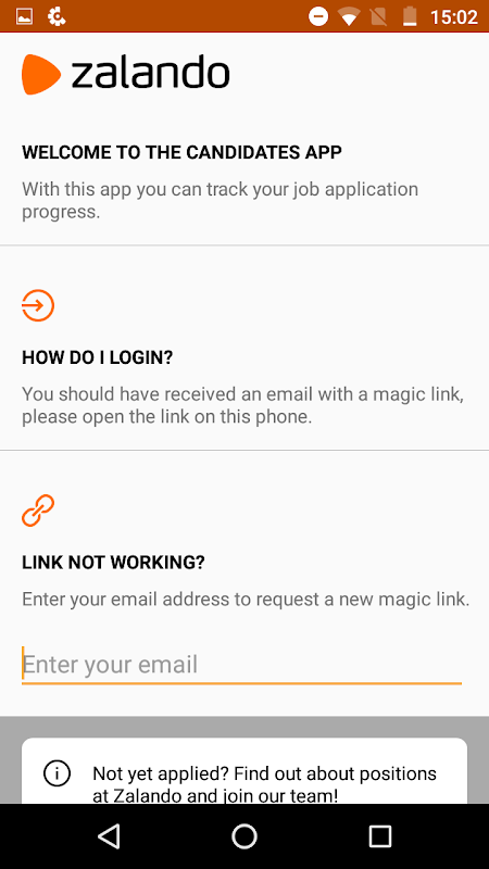 This app is for the purpose of helping candidates who have applied for a job opportunity at Zalando. The app is here to give information on the following:
