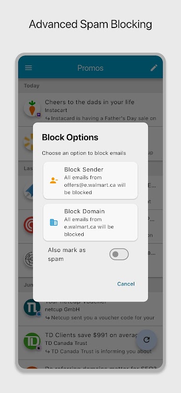 - 강력한 수신 거부 및 차단: 스팸과 원치 않는 뉴스레터에 지치셨나요? 탭 한 번으로 간편하게 수신 거부하세요. 특정 이메일 주소 또는 전체 도메인을 차단하여 마음의 평화를 되찾으세요.