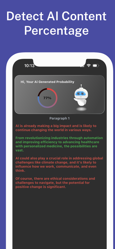 추측에 작별을 고하세요! ZeroAI의 GPT 감지 알고리즘은 AI를 사용해 생성된 문장을 쉽게 파악합니다. 단락에서 AI 확률의 백분율을 볼 수도 있습니다.
