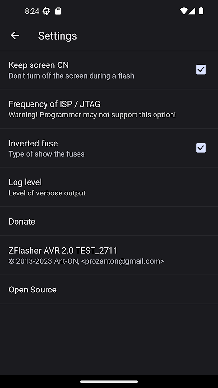ZFlasher AVR - 플래시 AVR 마이크로컨트롤러용 애플리케이션. 이 응용 프로그램은 최고의 AVR 플래시 도구 중 하나인 avrdude를 기반으로 합니다.