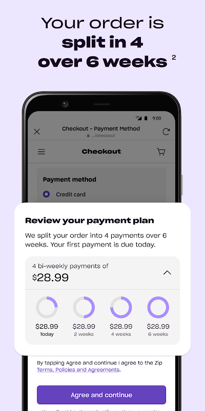 Our buy now, pay later platform helps you pay for your shopping in 4 payments¹. When you use Zip (previously Quadpay), there is no impact on your credit score. We’ll let you know when installments are due, so you’re on top of your split payments & purchases.