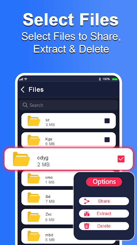 8) 압축 풀기 zip 파일 추출기의 파일 관리 기능 : 빠른 zipunzip 압축기로 휴대폰의 zip 파일을 쉽게 검색하여 zip 파일의 이동 또는 삭제를 지원할 수 있습니다.