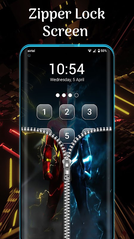지퍼 화면 잠금은 전화기 화면 잠금을 장식하고 개인 정보 보호 잠금 화면을 유지하기 위해 다양하고 유용하고 흥미로운 영웅 테마를 제공합니다. 지퍼 화면 잠금에는 장치 잠금을 해제할 때 사용할 수 있는 암호 옵션이 있습니다.