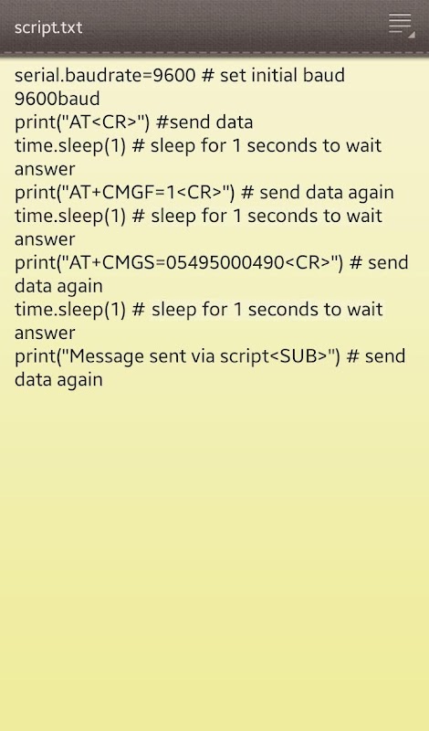 Z 터미널은 텍스트 형식으로 스크립트 파일의 사용을 지원합니다. 사용자는 자동으로 특정 응용 프로그램에 대한 적절한 구성 및 명령 줄을 포함하는 스크립트 텍스트 파일 필드 애플리케이션을 구현하는 직렬 신속하게 자신의 안드로이드 장치에 연결된 장치에 명령을 보낼 수 있습니다.