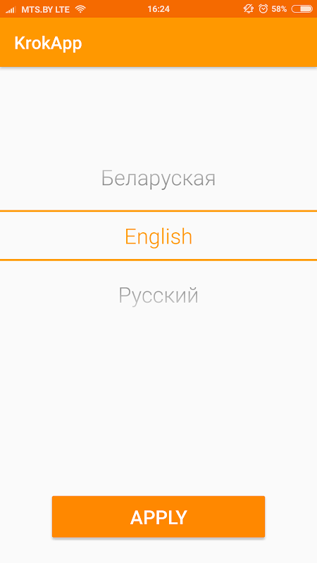 Five languages are available: Belarusian, Russian, English, Czech, Chinese.
